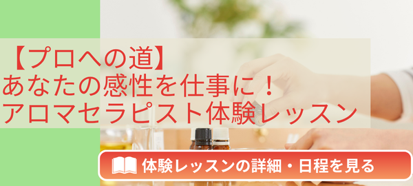 ここまで読んで、自然の力で人を癒すアロマセラピストの世界にご興味をお持ちになったら、まずはアロマスクール ラシエスタの体験レッスンに参加してみませんか?