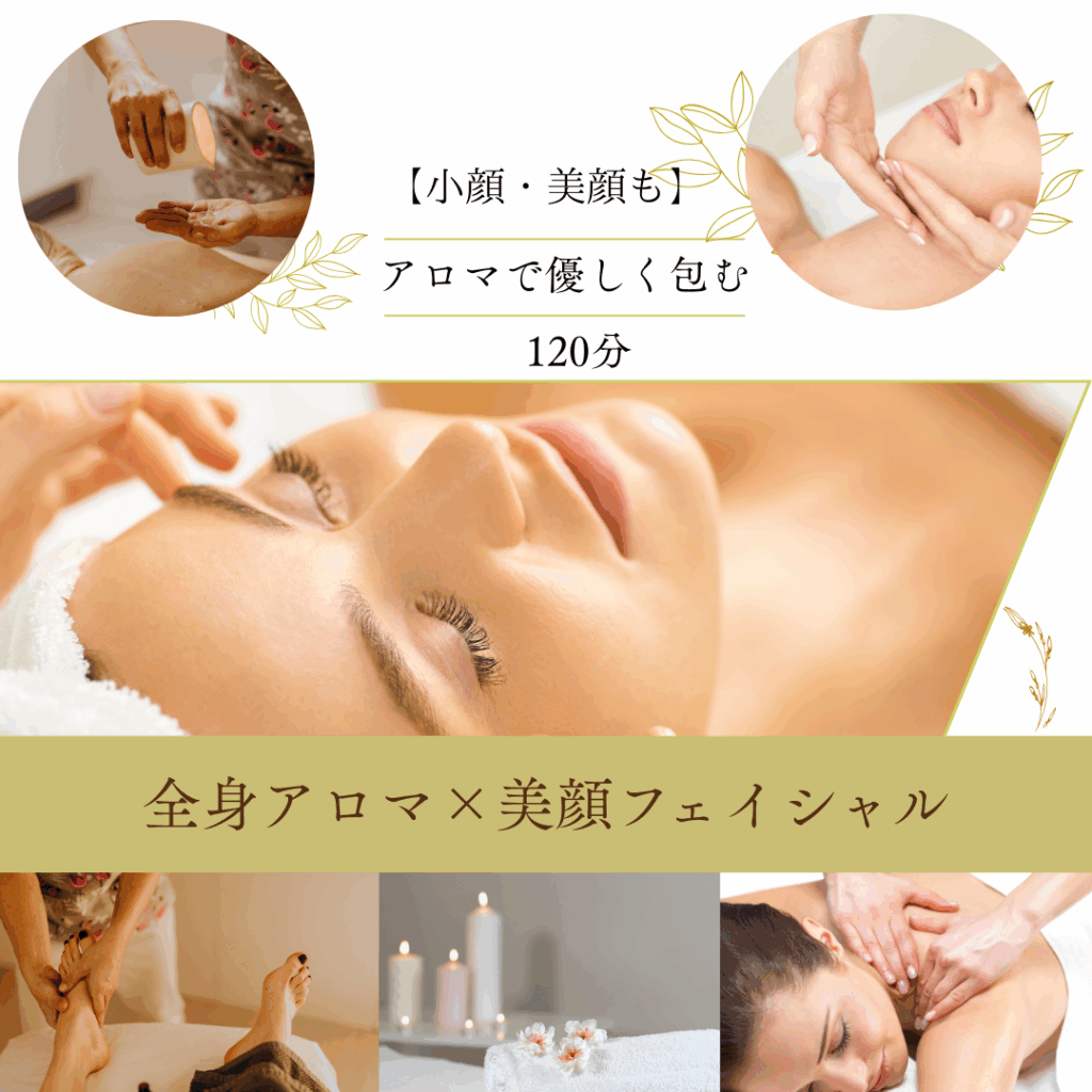 【全身美容】小顔フェイシャル×全身オイルマッサージ&足つぼリフレ120分コース
